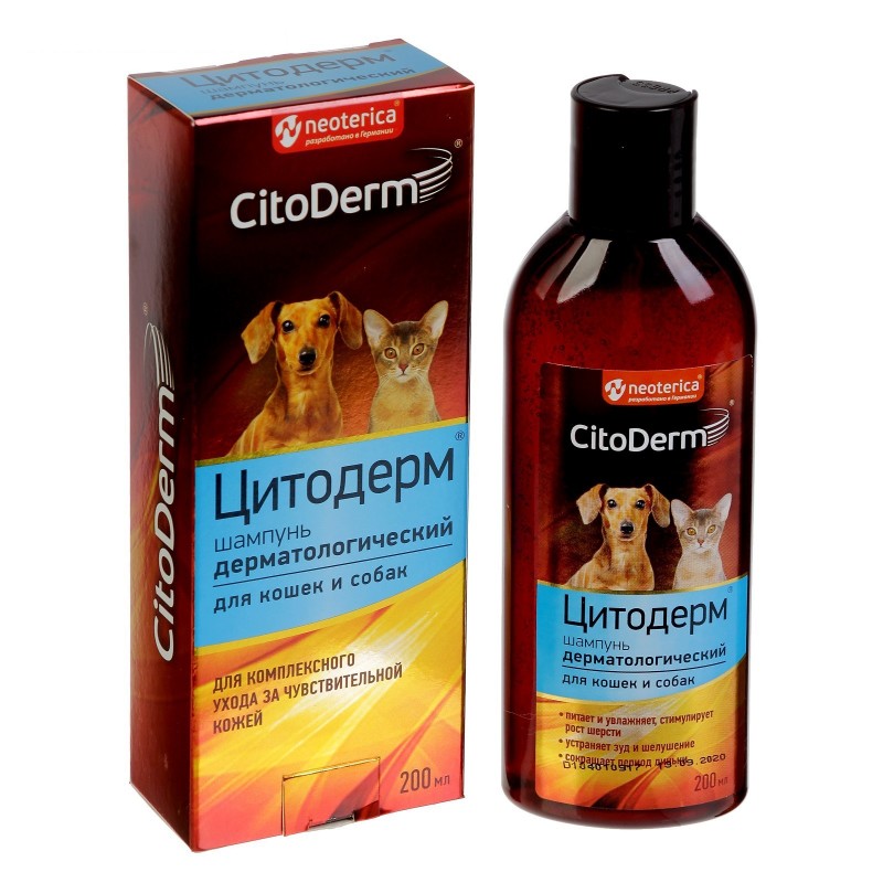 CitoDerm шампунь дерматологический – косметико-гигиеническое средство для ухода за кожей и шерстью животных, склонных к дерматитам.