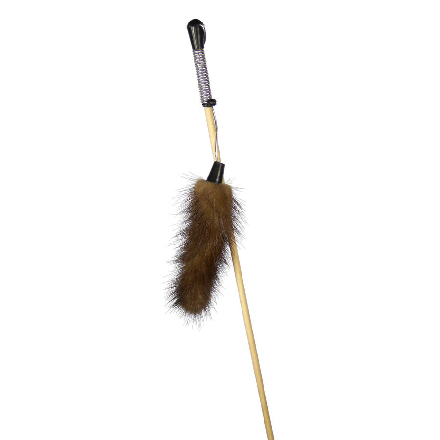Интерактивный дизайн: Махалка выполнена с норковым хвостиком, который привлекает внимание кошек благодаря своему движению и текстуре. Это создает эффект "добычи", что особенно интересно для охотничьих инстинктов кошек.
