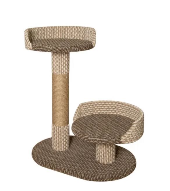 Основание - 60 х 40 см., высота - 70 см. Лежанки в диаметре 35 см. Высота столба - 60 см.Обмотка - джутовый канат.