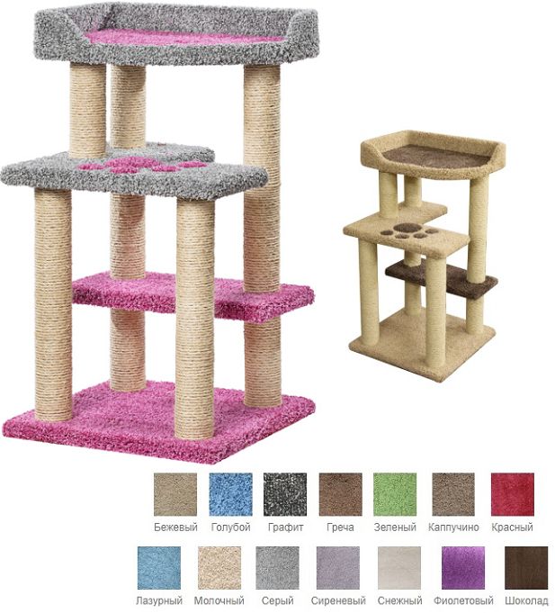 Конструкция относится к очень устойчивым и подходит для крупных пород. Ей не страшны шалости и мощные прыжки самых активных кошек! Весь каркас комплекса «Чипа» выполнен из прочных материалов, благодаря которым модель обладает высокой устойчивостью и легко выносит самые мощные прыжки кошек!