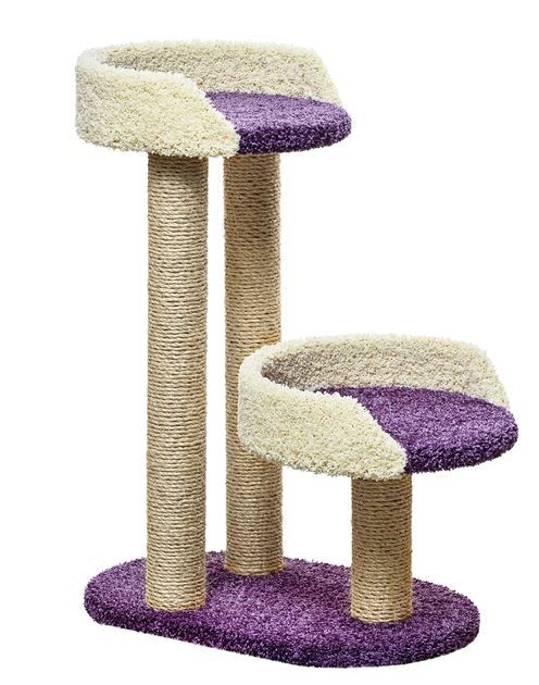 В основании когтеточки «Дося» находится овальная площадка, на которой на двух разноуровневых ножках-когтеточках располагаются круглые лежанки с бортиками.