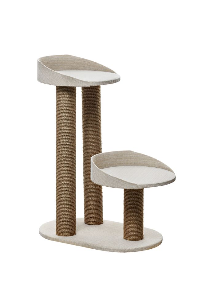 В основании когтеточки «Дося» находится овальная площадка, на которой на двух разноуровневых ножках-когтеточках располагаются круглые лежанки с бортиками.