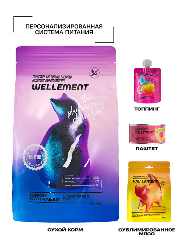 Сколько попугаев в одном мейн-куне? Правильный ответ: ни одного, если кормить мейн-куна сбалансированным кормом. Например, система питания Wellement позволяет так сформировать рацион, что котик точно не заскучает. Для крупных пород кошек в качестве основы рациона был специально разработан Wellement с индейкой и кроликом. Увеличенный размер гранул позволит котику получить удовольствие от еды в полной мере, а хондропротекторы и оптимальный уровень энергетической ценности поддержат домашнего хищника в любых начинаниях: будь то выслеживание птичек за окном, ловля пластмассовых мышек или просто здоровый сон.