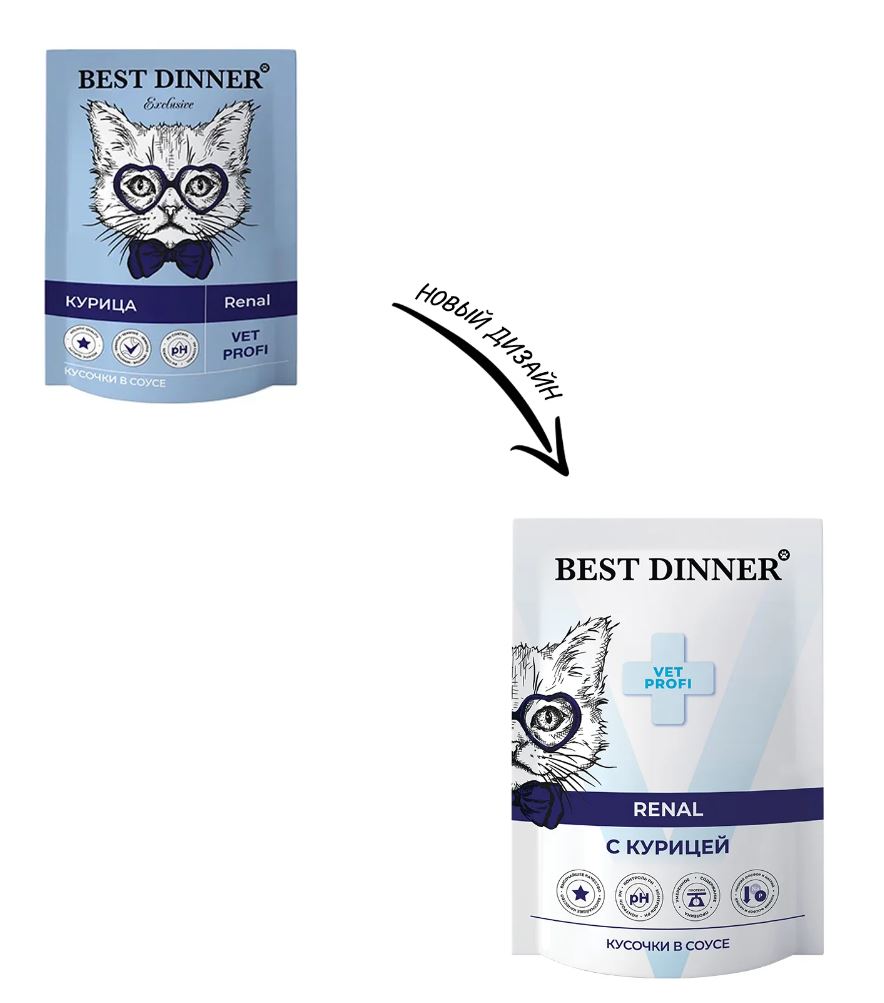 Паучи Best Dinner Exclusive Vet Profi Renal кусочки в соусе с Курицей для взрослых кошек для профилактики заболевания почек.