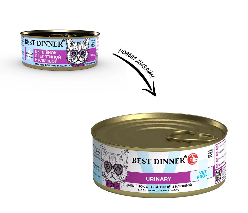 Best Dinner Vet Profi Cat Urinary консерва для кошек Цыпленок с телятиной и клюквой 100 г для кошек