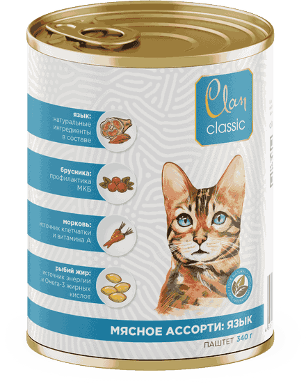 CLAN Classic консерва для кошек Мясное ассорти с Языком 340 г