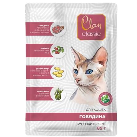 CLAN Classic пауч для кошек Говядина, клюква, спирулина в соусе 85 г