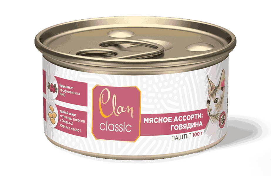 CLAN Classic консерва для кошек Мясное ассорти с Говядиной 100 г
