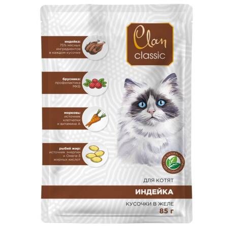 CLAN Classic пауч для котят Индейка с брусникой и морковью в соусе 85 г