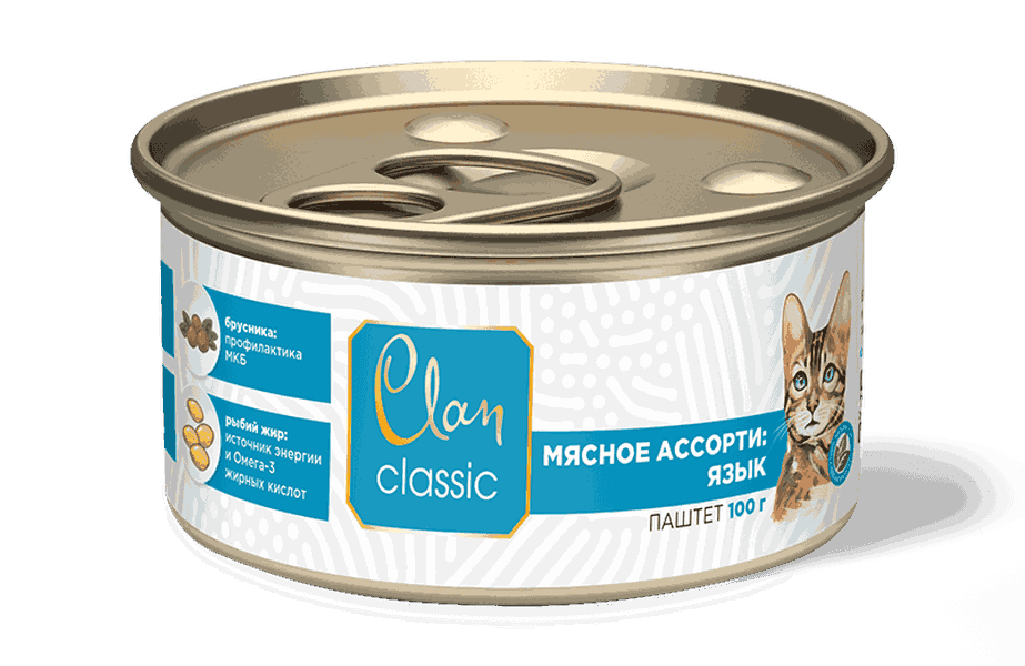 CLAN Classic консерва для кошек Мясное ассорти с Языком 100 г