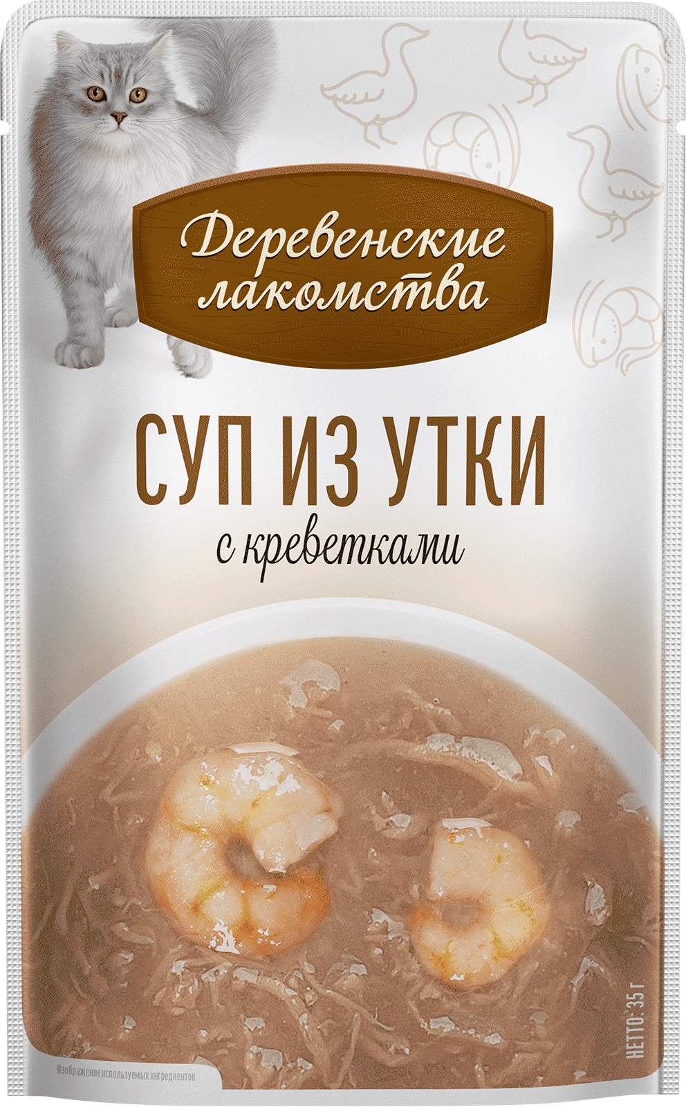Деревенские лакомства для кошек Суп из Утки с креветкой 4 шт * 35 г для кошек