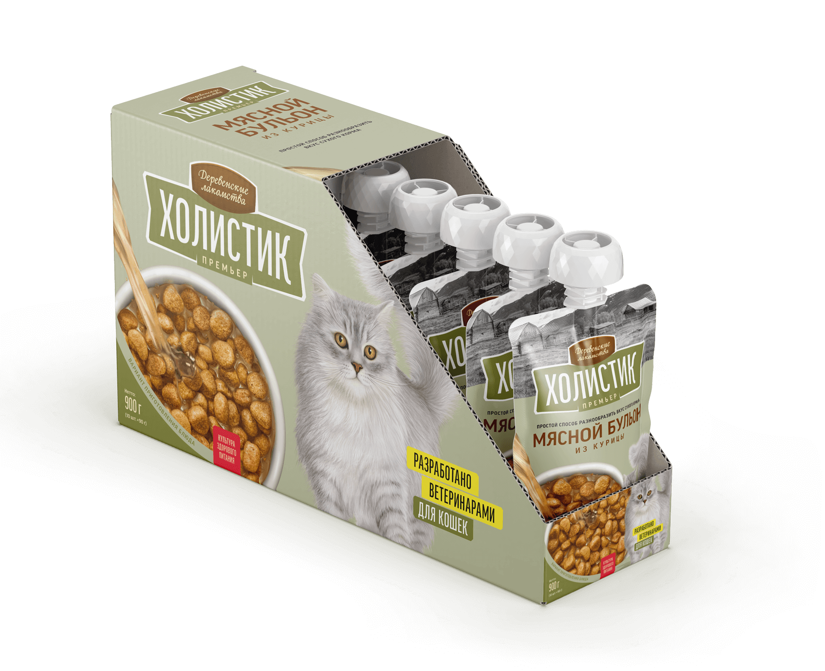 Деревенские лакомства Холистик для кошек Мясной бульон из Курицы 90 г для кошек