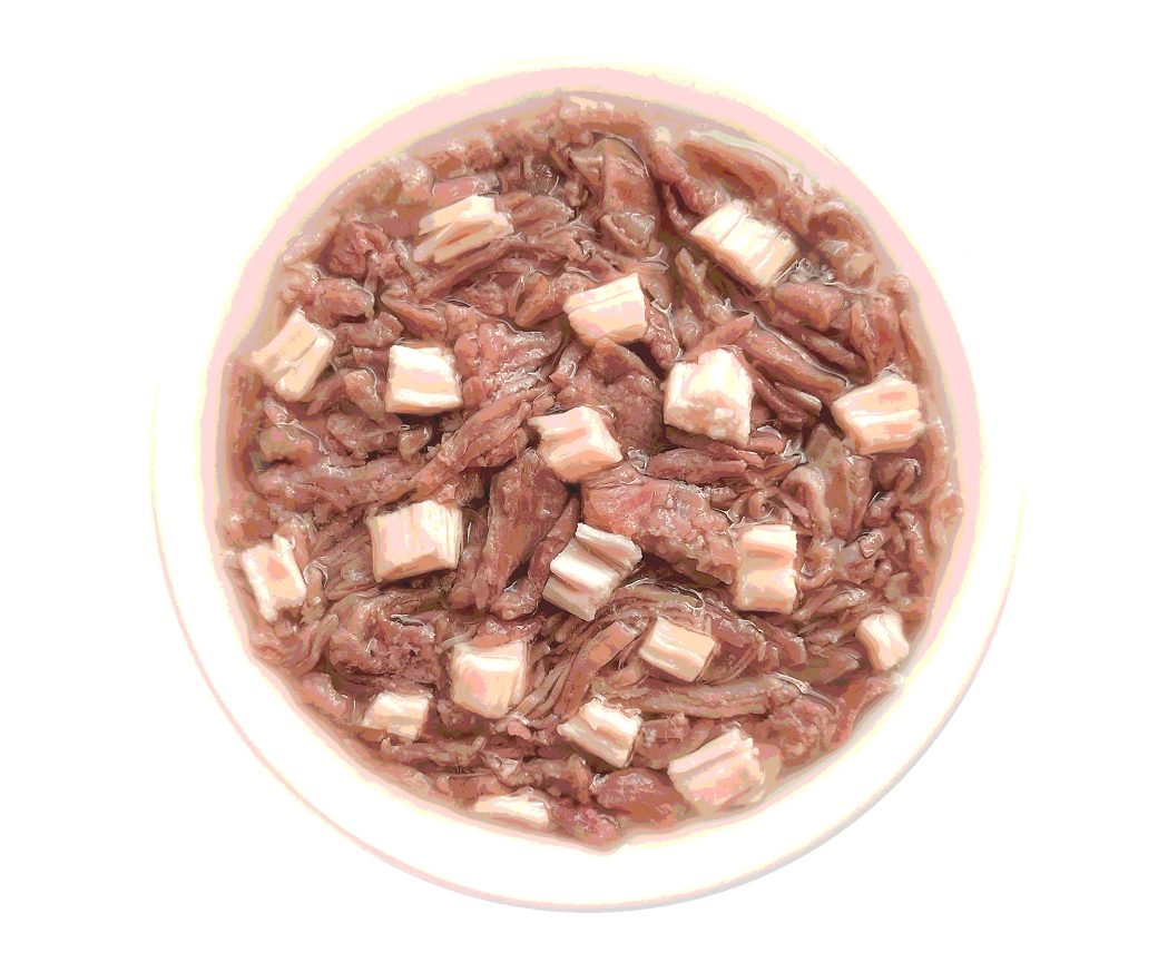 Состав: утка 54 %, кролик 6 %, бульон из утки 38 %, натуральная желирующая добавка.