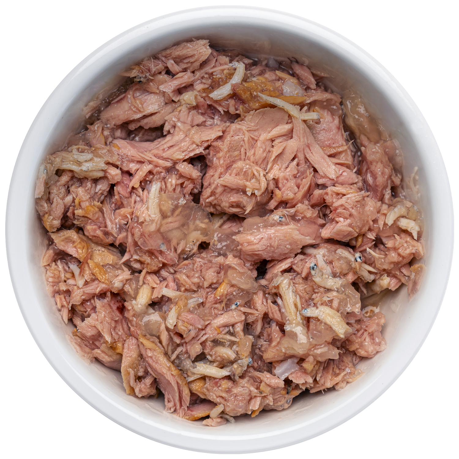 Тунец (44,3%), анчоус (5,7%), рис (1%), вода, каррагинан.