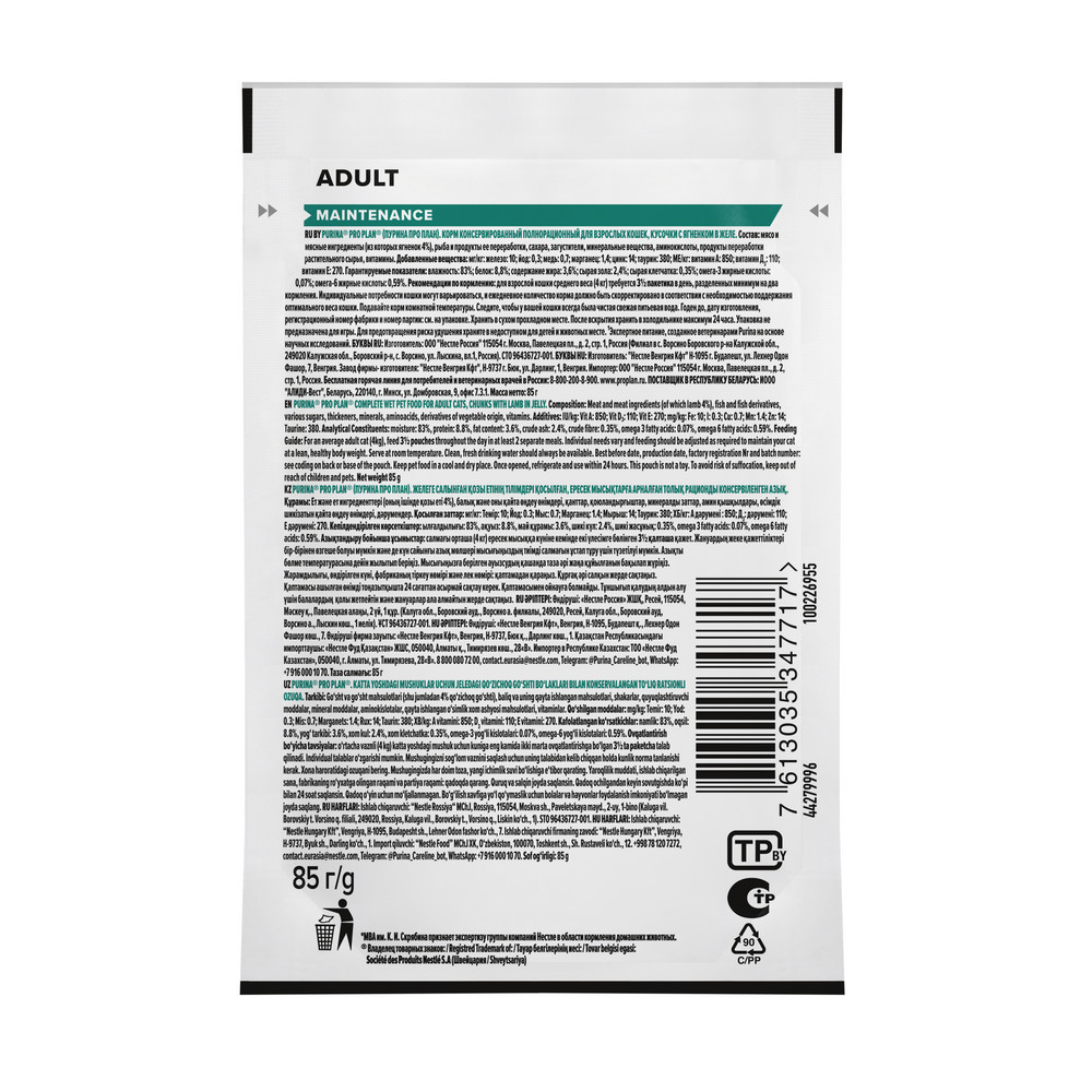 Pro Plan Adult Ягненок в желе пауч для кошек 85 г для кошек
