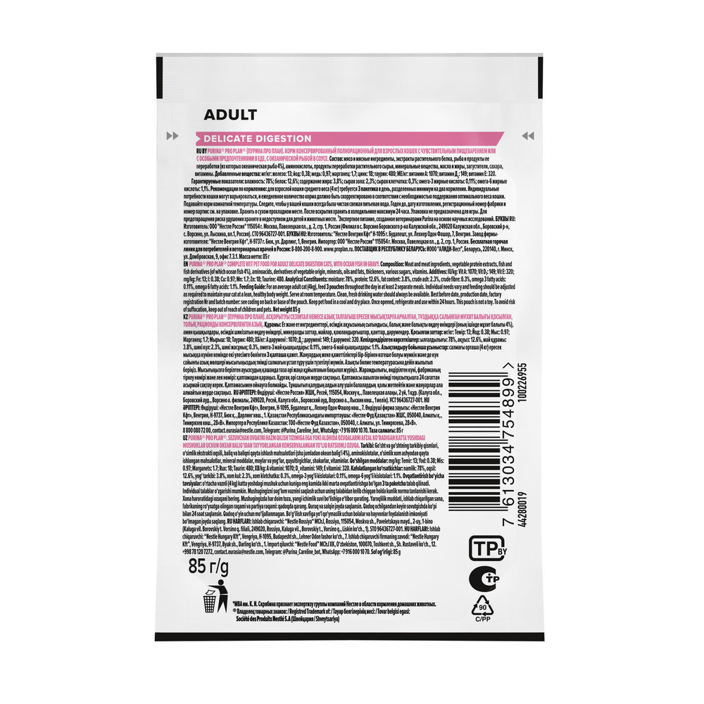 Pro Plan Delicate Океаническая рыба в соусе для взрослых кошек с чувствительным пищеварением.