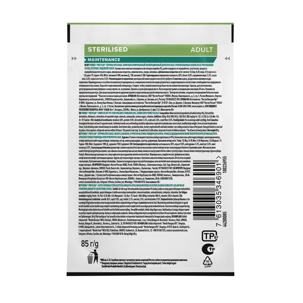 Pro Plan Sterilised Индейка в желе пауч для кошек 85 г для кошек