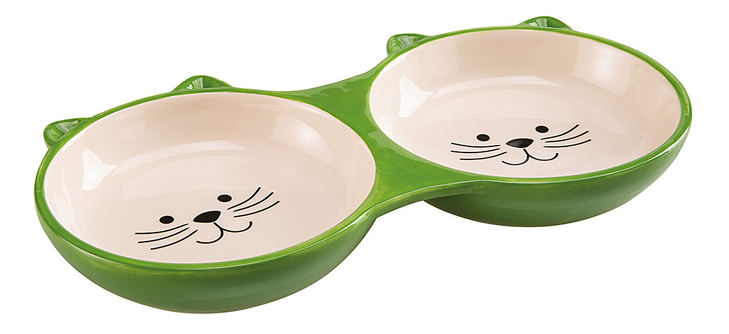 Попробуйте двойные миски Izar для одновременной подачи воды и корма для кошек. Они изготовлены из керамики, имеют приятные округлые формы и забавные рисунки улыбающихся котят внутри. К тому же у них есть милые \"ушки\"! Керамические миски Izar привнесут нотку веселья в аксессуары вашей кошки. Изготовлены с особой аккуратностью и вниманием к деталям. Размеры: 21,5x12x2,5 см.