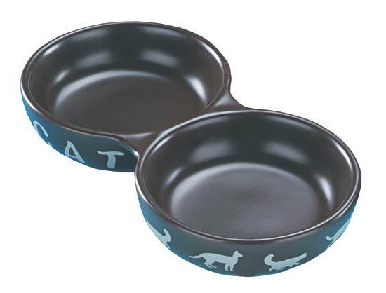 Двойная миска для кошек из керамики высокого качества с надписью Cat, легко моется и может использоваться для пищи и воды одновременно.