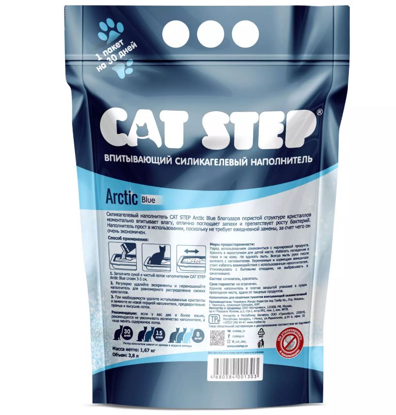 Одна упаковка обеспечивает безупречную защиту от запахов и максимальный комфорт для вашего питомца на протяжении 3-4 недель. CAT STEP™ обладает всеми преимуществами современного силикагелевого наполнителя: