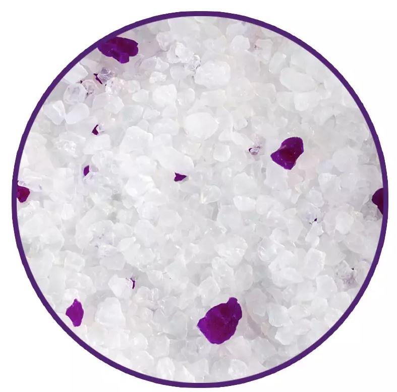 Содержит фиолетовые гранулы c легким ароматом лаванды, активирующимся при контакте с жидкостью.