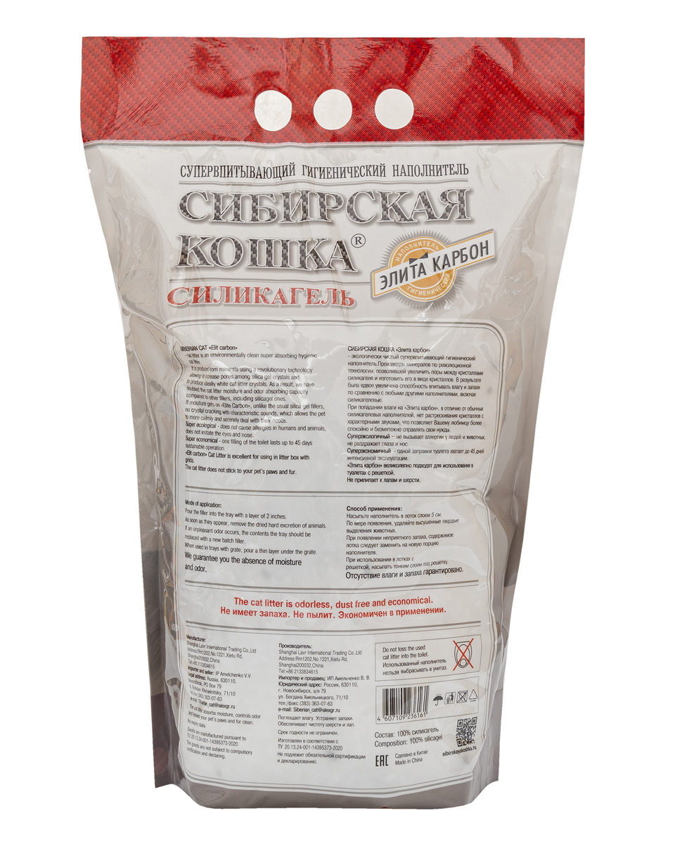 Сибирская кошка Наполнитель Элита карбон силикагель 4 л