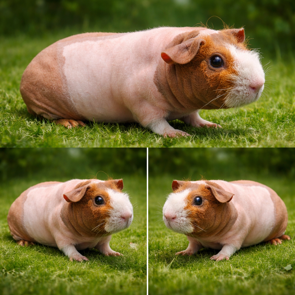 Не имея шерсти, которая и придает окрас животным, морские свинки имеют достаточно широкую цветовую гамму. Можно встретить скинни цвета шоколада, корицы, серебра, золота, также есть черные и белые малыши. Существуют многоцветные, двух- и трехцветные вариации. На лапках и мордочке есть несколько волосков, того же цвета, что и кожа питомца.