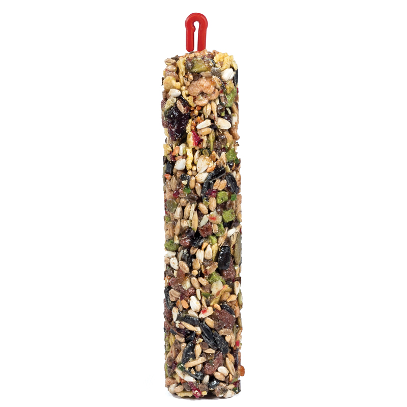 Состав: пшеница, ячмень, гречиха, шиповник, подсолнечник, мед, экструдированные гранулы, сафлор, просо желтое, просо красное, кукурузные хлопья, овес, тыквенная семечка, цукаты.