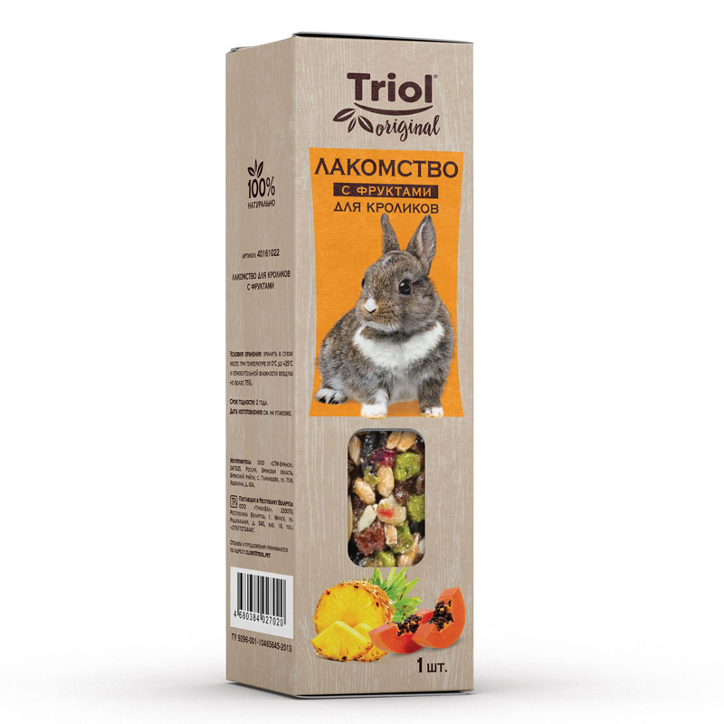 Питательное лакомство для кроликов с фруктами это сбалансированный состав лакомства содержит все необходимые витамины для крепкого здоровья и жизненного тонуса. Лакомство запаяно в полиэтиленовый пакет и уложена в кортонную коробочку. В упаковке 1 шт. -110гр.