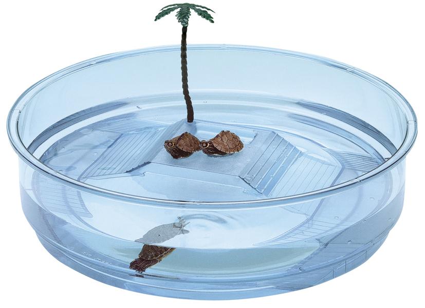 Oasi - круглая чаша для черепах из прозрачного пластика, в комплекте с декоративным островком и пальмой. Диаметр чаши 30 см, она подходит для комфортного размещения мелких рептилий; идеальна для размещения на небольшой площади. Пластиковый декоративный островок с легкостью можно убрать на время уборки.