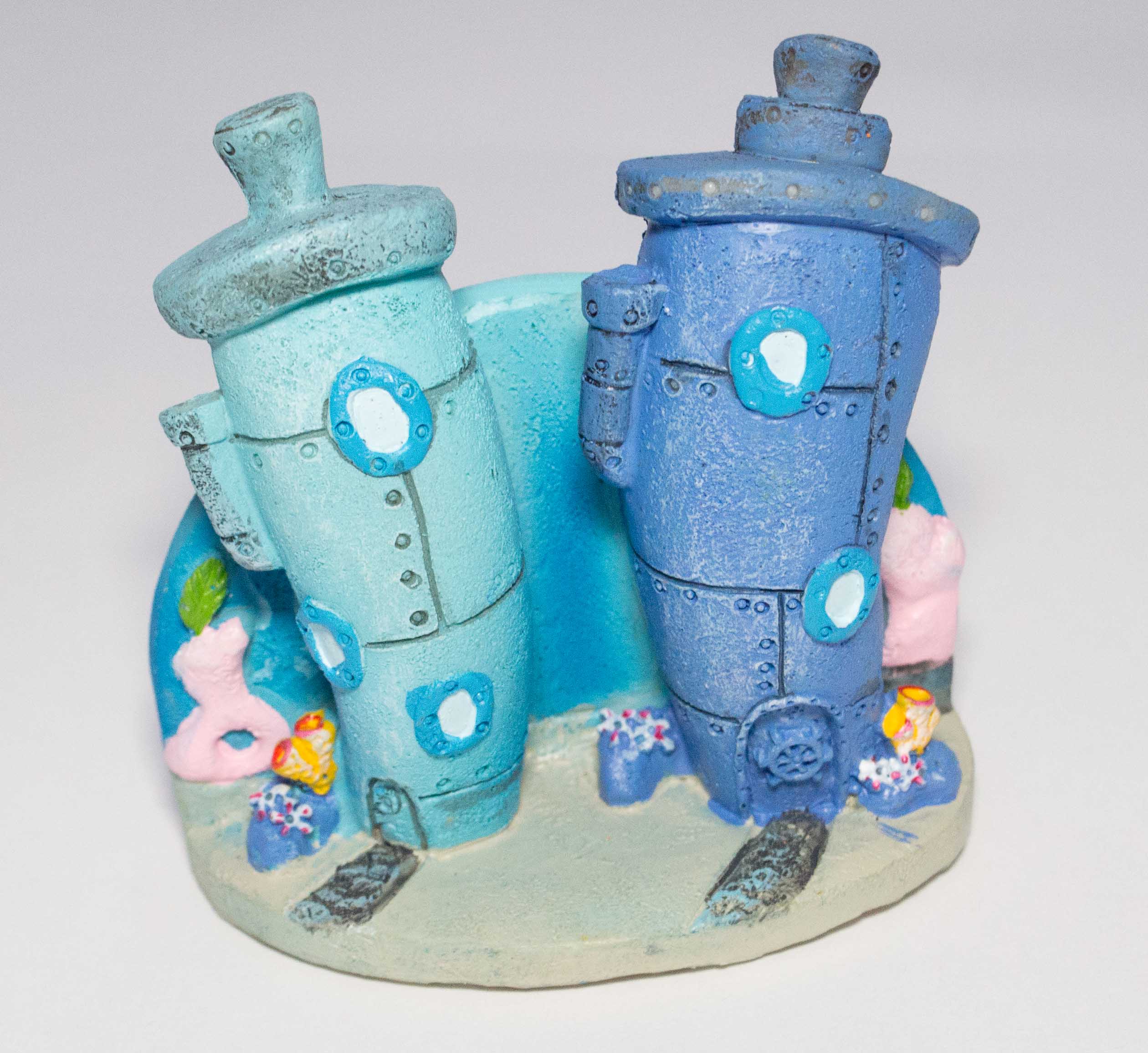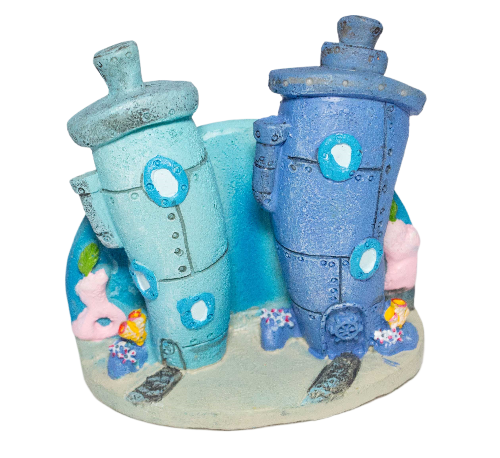 Яркая декорация в виде жилых домиков из популярного мультсериала. Украсит детский аквариум с живыми или искусственными растениями.