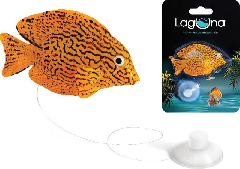 Декоративная рыбка из силикона с люминофором для аквариума. Лёгкая, она крепится ко дну аквариума с помощью присоски и тонкой лески. В течение светового дня люминофор накапливает свет, который затем постепенно начинает отдавать в темноте, создавая таинственное свечение.