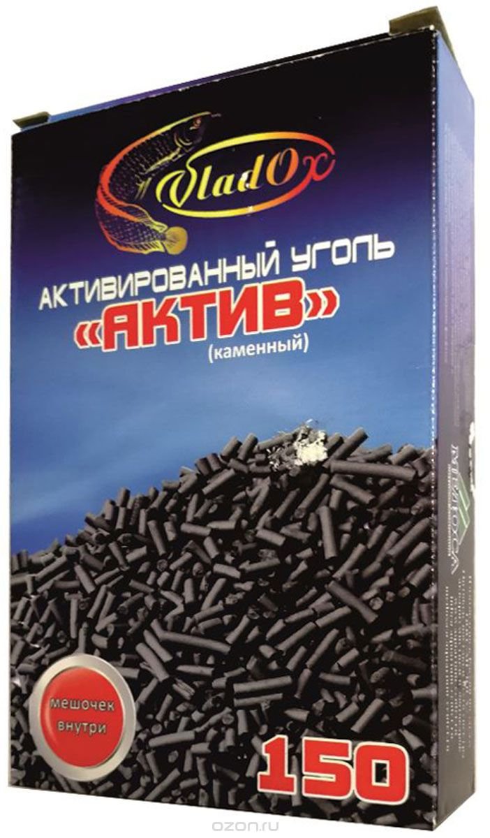 Активированный уголь каменный АКТИВ 150 мл - активированный уголь с повышенным сроком службы, Подходит для любых аквариумов, не требует частой замены, + мешочек