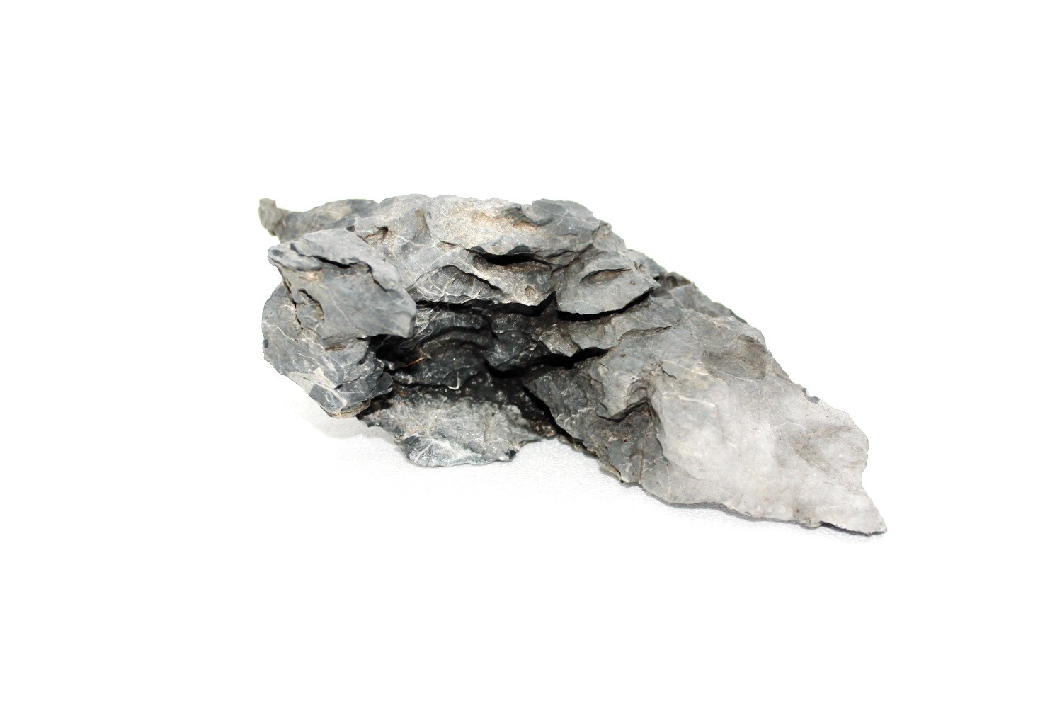 Сланцевая порода. Большинство камней представляют собой плато, имеются ровные спилы. На боковинах есть рельефные участки. Благодаря ровным спилам камни легко ложатся друг на друга, образуя вертикальные конструкции. Так же эти камни эффектно смотрятся, когда их помещают в грунт вертикально, образуя «скальные утесы». В таких конструкциях очень любят жить цихлиды и различные вьюны.