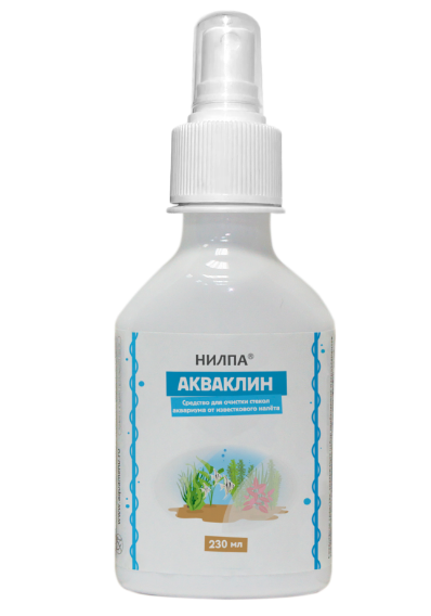 Акваклин – средство для очистки внешней и внутренней сторон стекол аквариума и аксессуаров (диффузор CO2, дропчекер, лилипайп и т.д.) от известкового и бактериального налёта и других загрязнений.