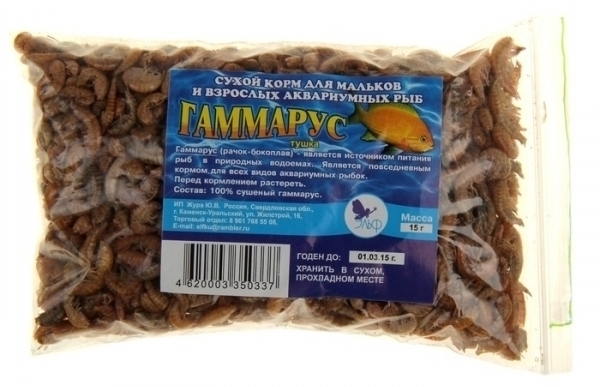 Рекомендуем применять гаммарус для мелких пресноводных и морских аквариумных рыб.