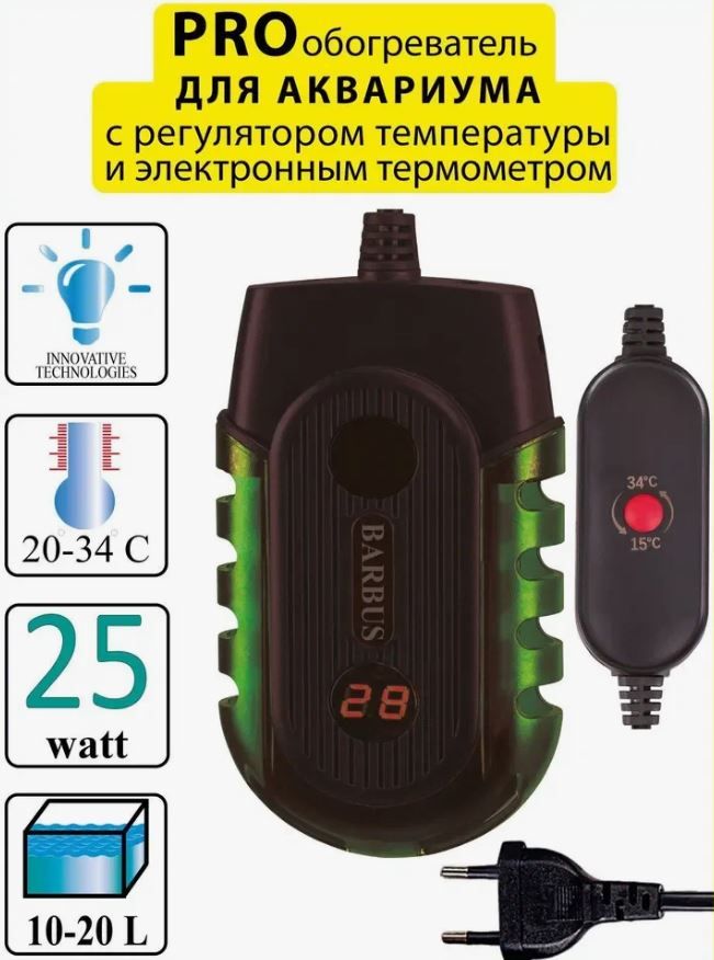 Инновационный обогреватель самого маленького размера из всех имеющихся аналогов. Занимает в аквариуме минимум места. Имеет электронную регулировку температуры.
