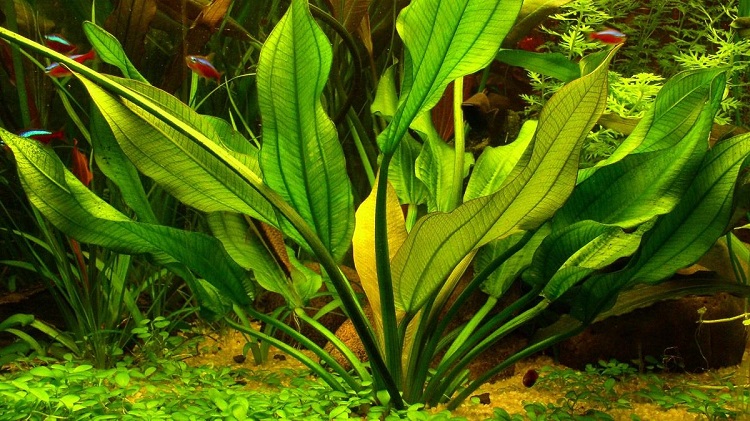 При посадке мощная корневая система нуждается в хорошей подкормке. Эхинодорус уругвайский положительно реагирует на циркуляцию воды и ее обильные подмены воды 1/3 части.