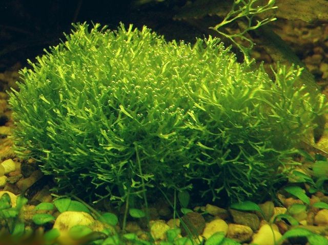 Риччия плавающая - очень распространенное аквариумное растение, представляющее собой ажурный насыщенно-зеленый мох, который плавает на поверхности воды и образует красивые зеленые островки. Это растение не имеет ни листьев, ни стеблей, ни корней и состоит из маленьких ветвящихся и переплетающихся плоских пластин (слоевища). Риччию очень часто используют в качестве естественного субстрата для разведения аквариумных рыб, а также как укрытие для мальков. Некоторые рыбы используют риччию для строительства своих гнезд. Более того, риччия может быть использована как естественный затемнитель для растений, которые не любят яркое освещение. Помимо использования риччии на поверхности воды, ее можно содержать и в погруженном состоянии (впервые такой способ предложил известный аквадизайнер из Японии Такаши Амано). Для этих целей комок ричии укладывают на камень или корягу и закрепляют мелкой капроновой сеткой или тонкой леской. Риччия прорастает через сетку и иногда ее даже приходиться подрезать ножницами.