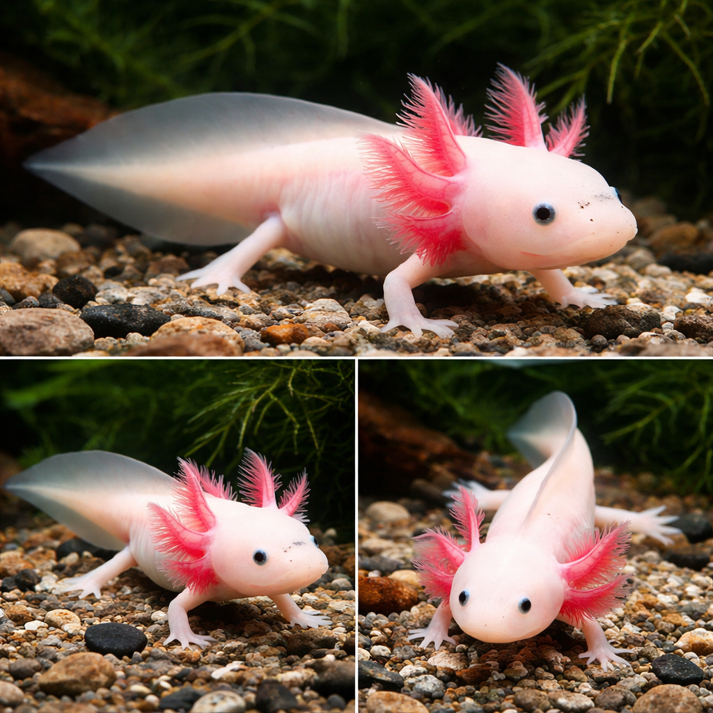 Если понизить уровень воды в аквариуме, то аксолотль вревратится во взрослую саламандру – у него уменьшатся внешние жабры и со временем совсем исчезнут. Если же уровень воды увеличить, внешние жабры снова появятся.