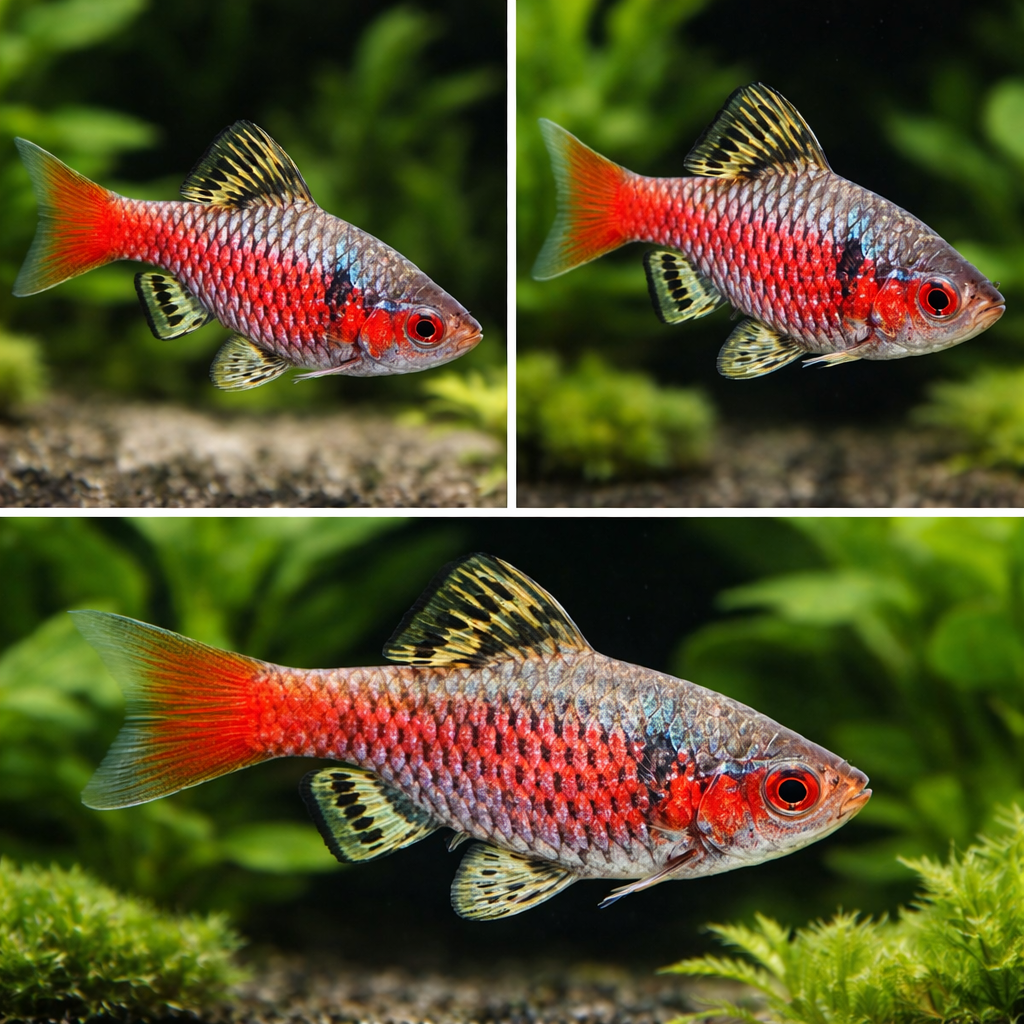 Цвет рыбки варьируется от красного до вишневого цвета, отсюда, собственно, барбус и получил свое название.