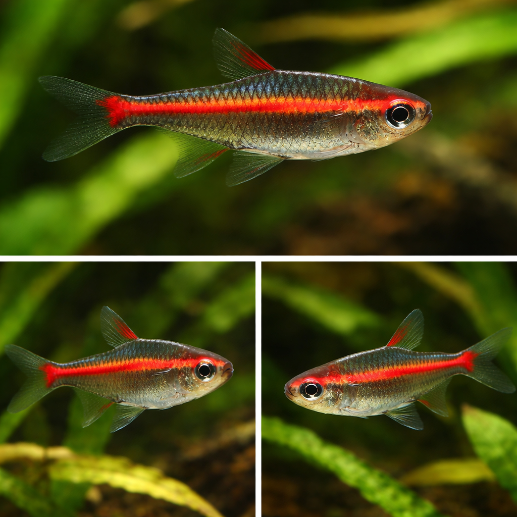 Эритрозонус (Hemigrammus erythrozonus), также известный как Пылающая тетра, — это идеальный выбор для тех, кто любит спокойных и изящных рыбок. В отличие от неонов, эритрозонус обладает мягким, «тлеющим» свечением, которое особенно эффектно смотрится в густо засаженных аквариумах.
