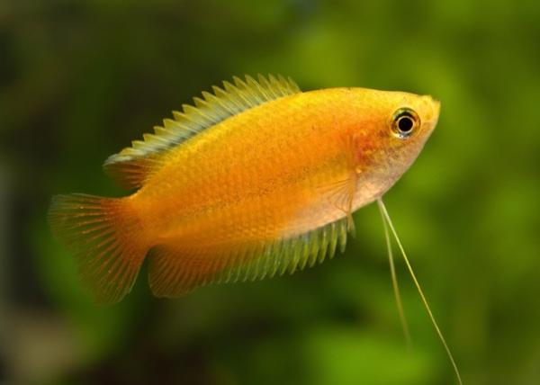 Гурами – пресноводные лабиринтовые рыбки, «фирменным знаком» которых являются брюшные плавники в виде длинных нитей. Эти самые нити являются у них органом осязания. Родина гурами — Юго-Восточная Азия и Индокитай. Часто можно видеть, как гурами ощупывают с помощью них стенки и декорации аквариума. Как и все представители лабиринтовых, гурами дышат атмосферным воздухом, поэтому аквариум не должен закрываться наглухо – под крышку всегда должен поступать свежий воздух. Гурами — одни из самых неприхотливых аквариумных рыбок, причем разводить их также легко, как и содержать. Размер тела всех видов гурами от 5 до 10 см, только змеевидный гурами может вырасти до 20см. Половые отличия этой рыбки выражены достаточно четко: самцы крупнее самок, ярче окрашены, их плавники длиннее (спинной плавник большой и вытянутый).