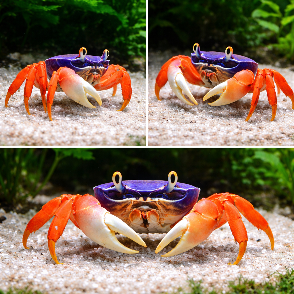Радужный краб может жить в пресной воде и даже линять, пользоваться одним камешком или плотиком как береговой зоной. Но это происходит не от того, что им предоставили оптимальные условия, а от природной живучести краба.
