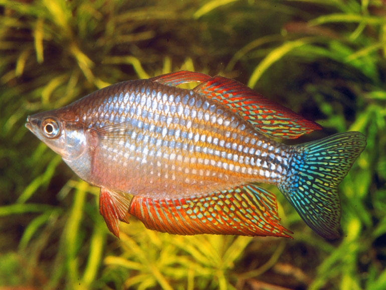 Радужница неоновая (Melanotaenia praecox) или меланотения прекокс это активная, красивая и очень интересная рыбка.Это небольшая радужница, которая вырастает до 5-6 см, за что ее еще называют карликовой. Но при этом очень ярко окрашена — розовато-серая чешуя, отливающая при малейшем изменении падения света, за которую они и получила свое название.