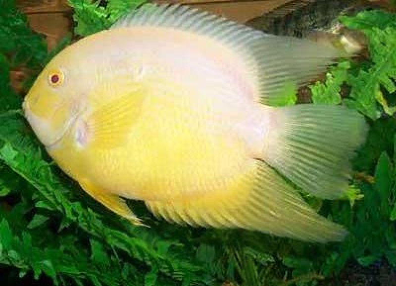 Цихлазома северум – крупная высокотелая цихлида. Ее еще называют ложным дискусом, хотя форма ее массивного тела нисколько не напоминает изящный плоский диск. Северум в переводе с латыни — «сдержанный», что относится, скорее всего, к внешности рыбы. Плотный серо-коричневый корпус с оливковым отливом, более высокий, чем у обычных цихлазом, с боков мелкий крап бурого цвета. Спинной плавник окрашен от оливково-зеленого до почти черного цвета, анальный плавник – с красноватой верхней частью, а хвостовой – серо-зеленый. Аквариумные северумы окрашены с разной интенсивностью.