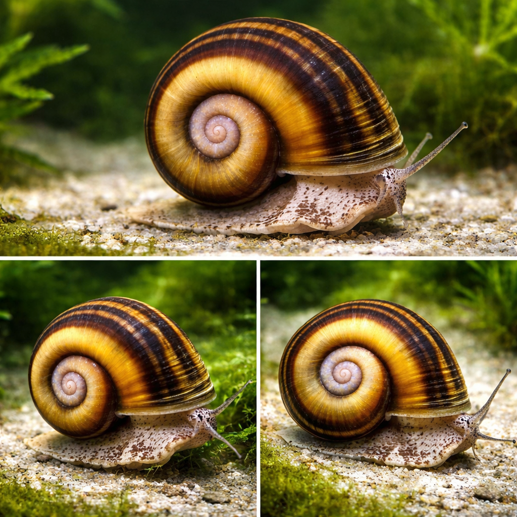 Ареал обитания улитки маризы (Marisa cornuarietis) обширен, живет она в реках, озерах и болотцах, где много растительности. Это достаточно крупная улитка, ширина ее раковины составляет примерно 1,5-2 сантиметра и 5 сантиметров в высоту. Раковина желтая с темными полосами, имеет 3-4 витка.