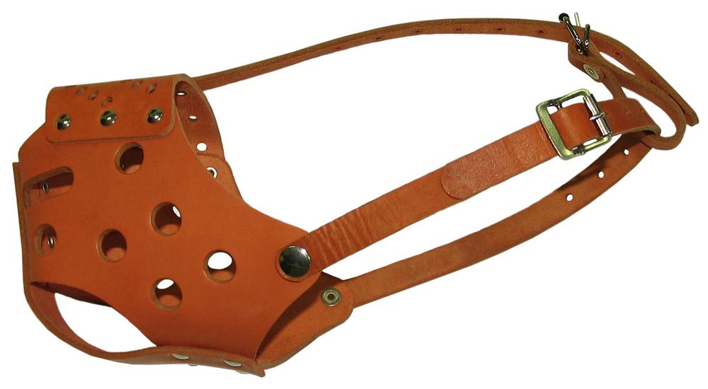 Эргономичный сплошной намордник из натуральной кожи, учитывающий породные особенности крупных собак с широкой мордой.