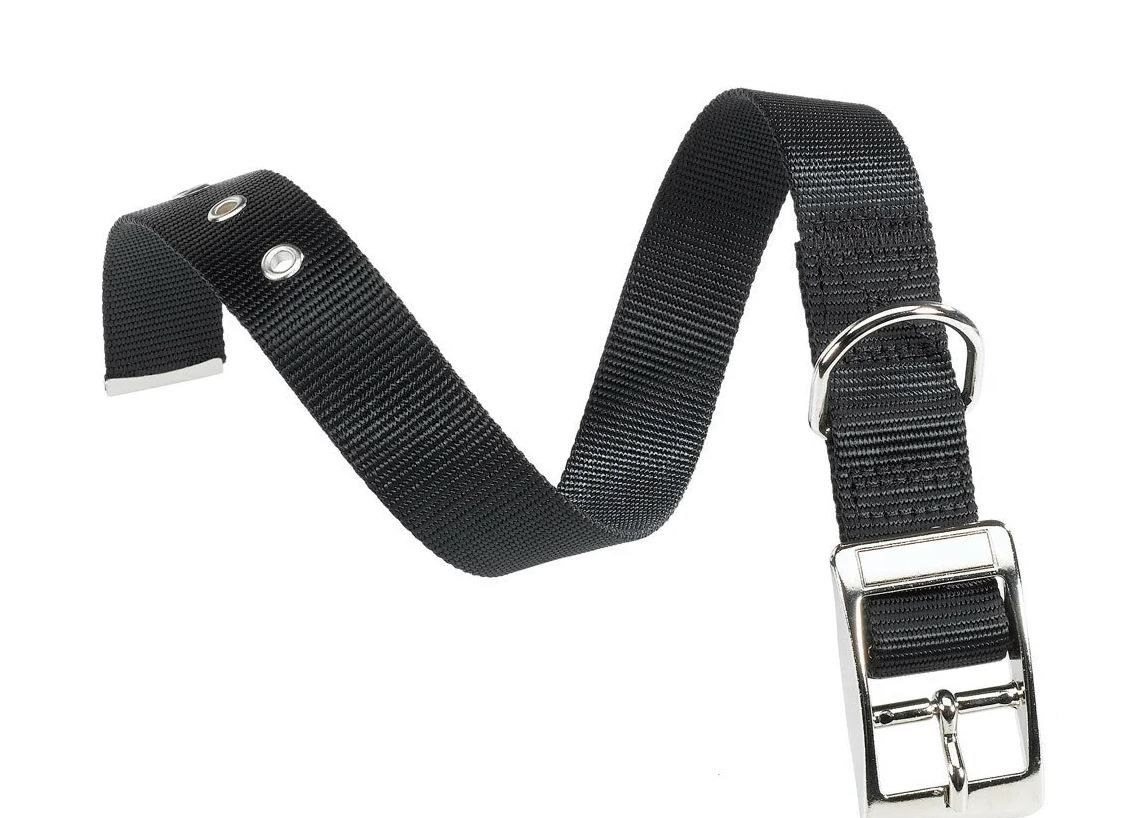 Нейлоновый ошейник с классической стальной застежкой. 4 отверстия на ремешке позволяет легко регулировать длину по мере роста вашего питомца.
