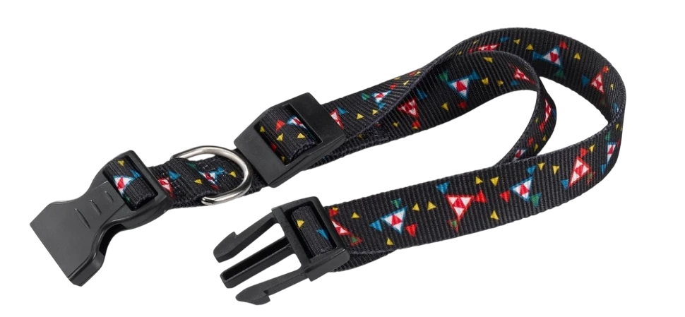 Расцветка ошейников Club Kandinsky представлена абстрактным геометрическим рисунком на черном фоне, навеянном работами одноименного русского художника.